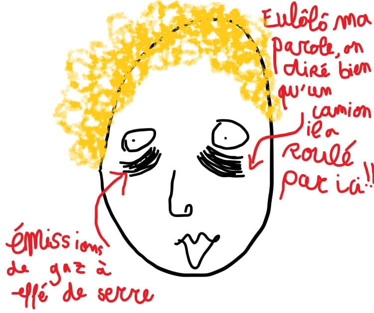 Analyse esthétique : tu as toujours beaucoup trop complexé sur tes cernes. On te juge pas. On juge en revanche tes méthodes de maquillage pour cacher tes cernes. Attention, un fond de teint trop clair devrait surtout donner l'impression que tu reviens du ski ALORS QUE TU DEVAIS ETRE EN CONFINEMENT.