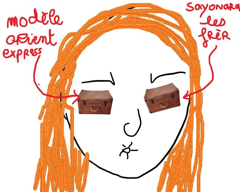 Analyse esthétique : « avoir des valises sous les yeux » est une expression qui s'emploie pour parler de toutes sortes de cernes, j'en conviens. Mais il y a valise genre valisette sac à main et il y a valise genre container à roulette. Quand vos cernes ont tellement une vie indépendante de la vôtre qu'ils voyagent tout seuls.