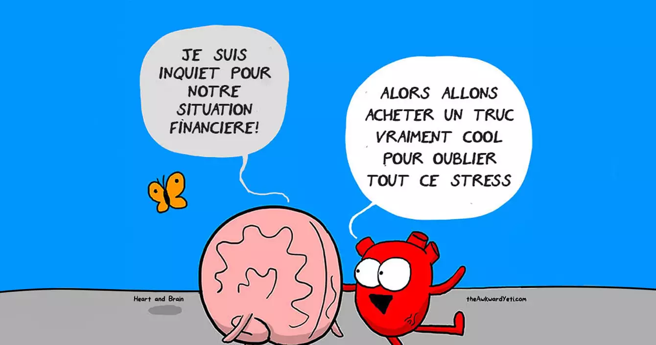 - Je suis inquiet pour notre situation financière - Alors allons acheter un truc vraiment cool pour oublier tout ce stress.