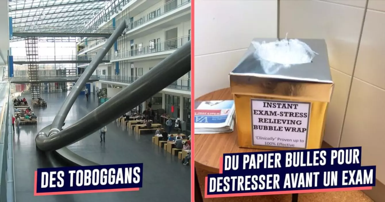 Quand on a été à l'école ou qu'on y est encore, on est d'accord pour dire que ce n'était pas la joie dans les salles de classe tous les jours et que pratiquer un ventriglisse dans les couloirs était interdit. Par contre il existe certaines écoles ou universités qui ont des idées de qualité et on est clairement très jaloux.