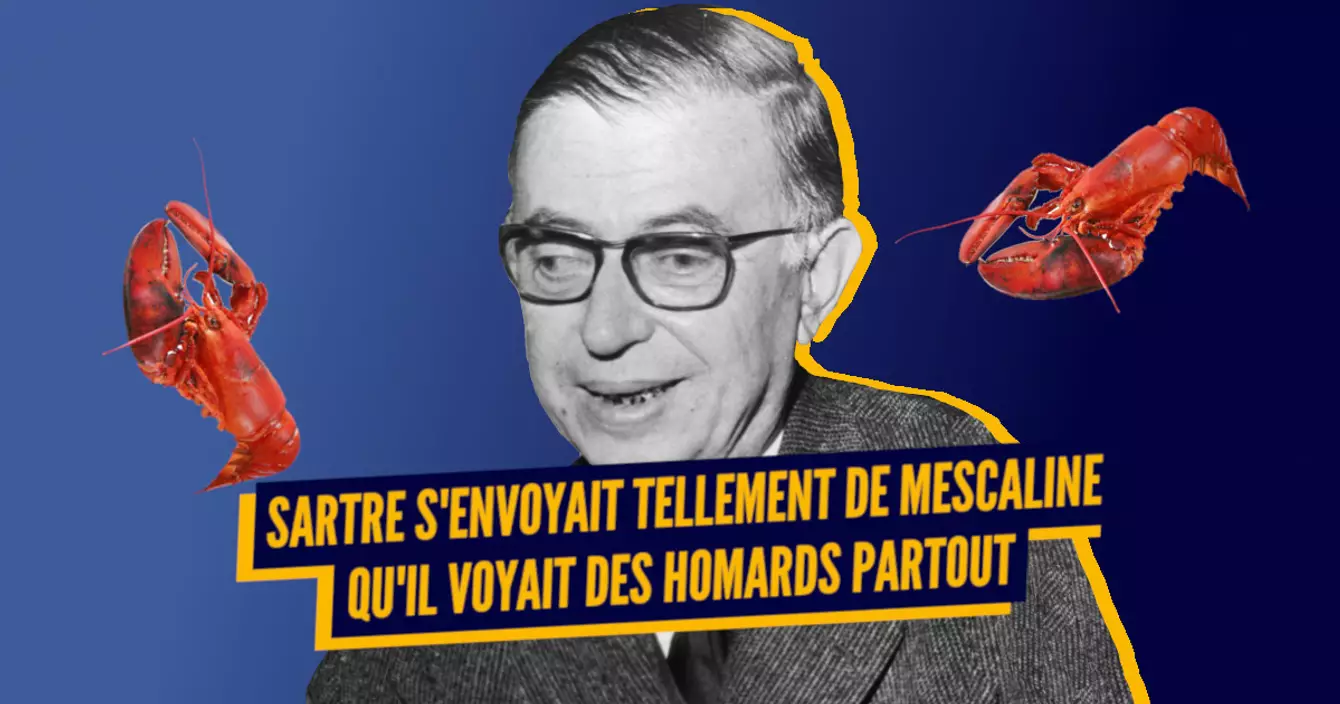 Comme beaucoup de ses comparses ayant expérimenté la mescaline (Antonin Artaud, Henri Michaux…) l'auteur de Huis-Clos a écrit sur son expérience. Sartre en a pris pour la première fois en 1935 et n'a fait que développer son addiction tout au long de sa vie à mesure que son champ de vision s'encombrait de homards ; dans les années 70, Sartre a ainsi entamé une course effrénée sur les Champs-Elysées parce qu'il était persuadé d'être poursuivi par des hordes de homards.