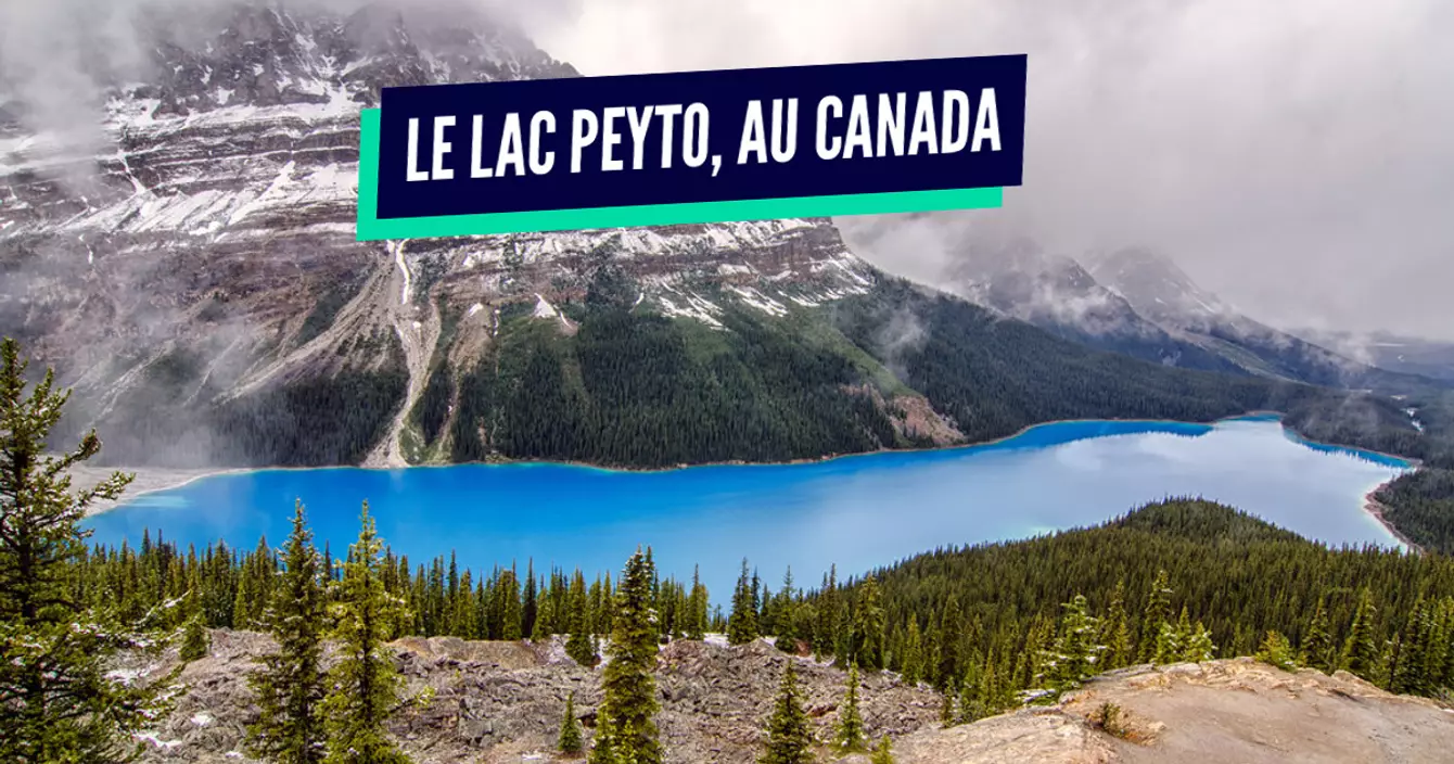 L'eau d'un bleu surréaliste se détache du spectaculaire vert de la végétation qui entoure le lac Peyto. Situé dans le Parc National de Banff en Alberta, ce site desservi par la promenade des glaciers est sans conteste l'un des plus beaux de toute l’Amérique du Nord. Le genre d'endroit qui encourage presque à penser qu'il n'y a ni pollution ni réchauffement climatique et que finalement tout va bien.