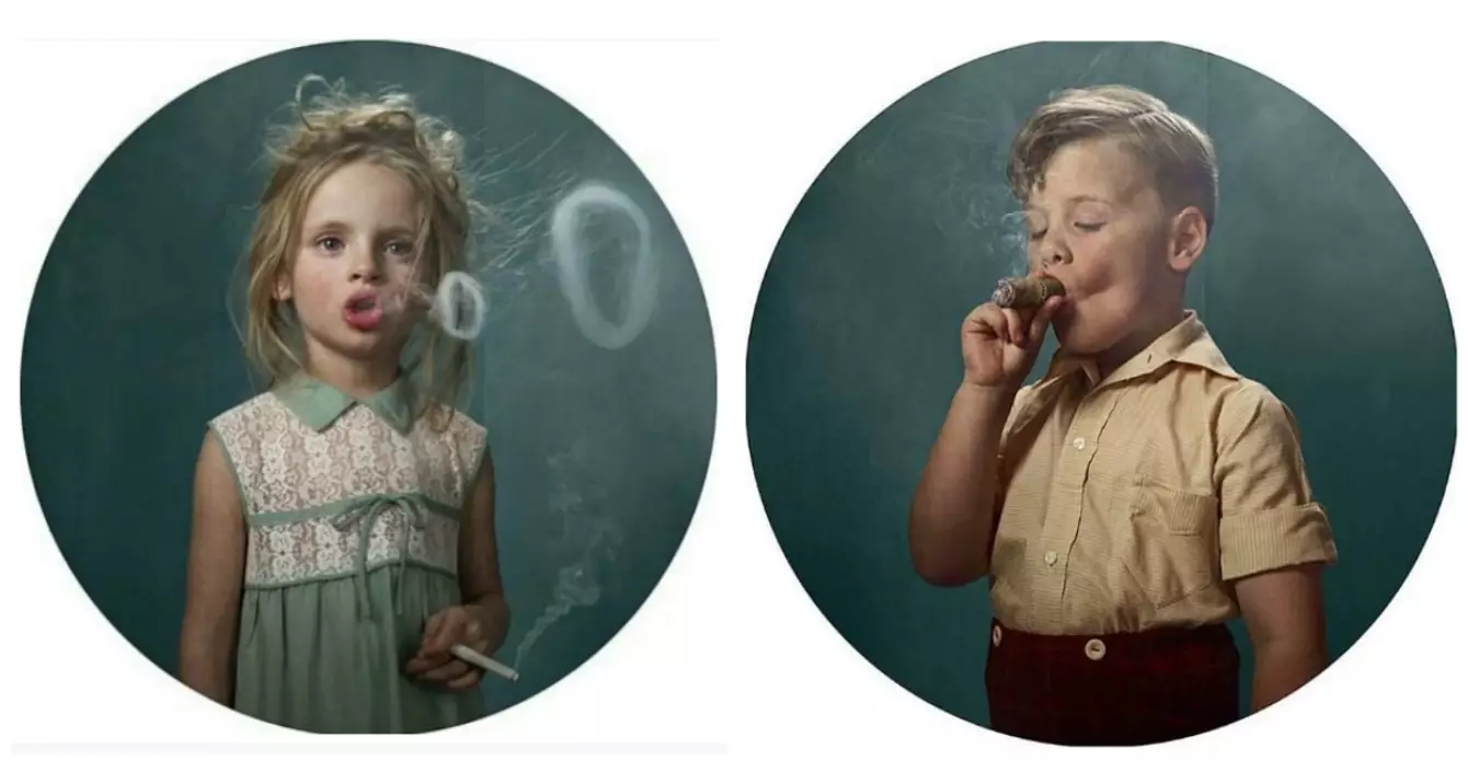 Frieke Janssens est une artiste qui aime la photo. On ne sait pas quel est son rapport avec la clope et les enfants, mais elle a décidé d'allier les deux afin de sensibiliser les gens au tabagisme passif. Et comme c'est bien fait, qu'on aime les enfants, et qu'on aime pas trop la cigarette car ça coûte cher et ça pue, on balance un petit partage des familles.