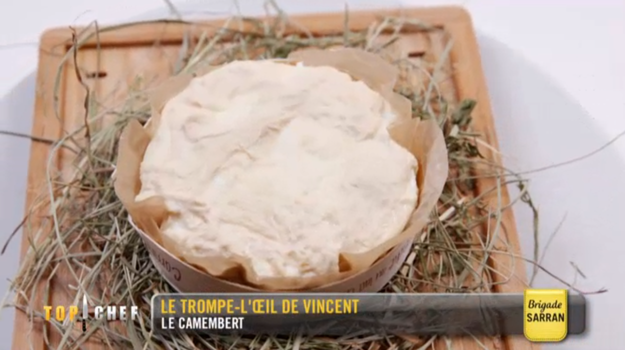 Pour l'épreuve du trompe l'oeil, Vincent décide d'imite un camembert. Enfin pas lui directement parcque c'est super dur d'imiter un camembert mais dans son assiette quoi. Un camembert qui sera en fait un dessert. Vincent carbure et le résultat est incroyable visuellement. C'est d'ailleurs lui qui remportera l'épreuve. Retour gagnant.
