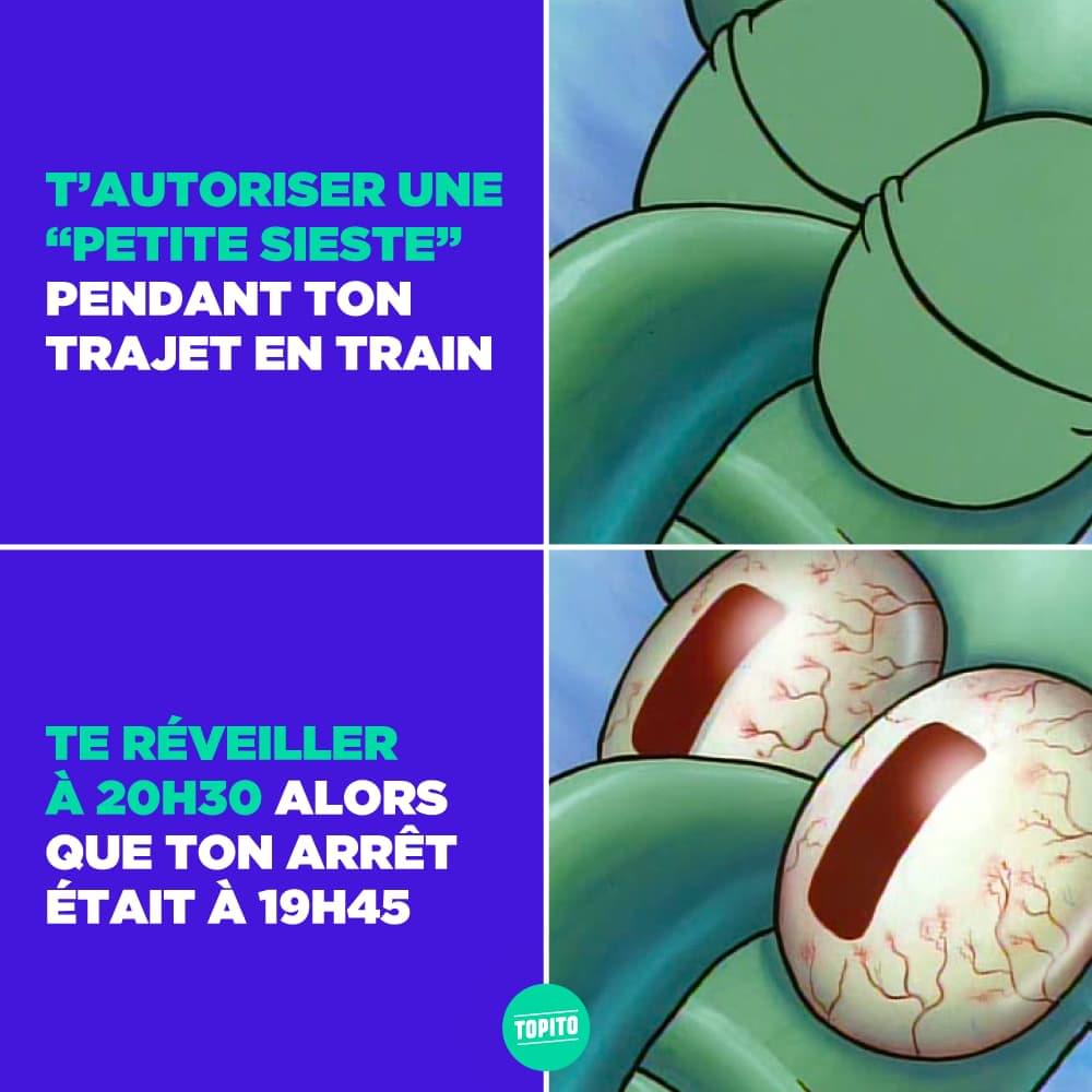 QUOUA ? Coup dur. Cette sieste est clairement le meilleur moment de la journée. Pourtant, s'allonger après manger bouleverse complètement le processus de digestion. Les aliments ont du mal à descendre, restent plus longtemps dans notre estomac et ralentissent notre digestion. Cette position favorise aussi les remontées de sucs gastriques et créée des brûlures d'estomac. Il vaut mieux attendre deux heures avant de piquer un somme, ou se contenter de dormir assis ! Ah ? Non ? Bon bah… Pas assis non plus, en fait.