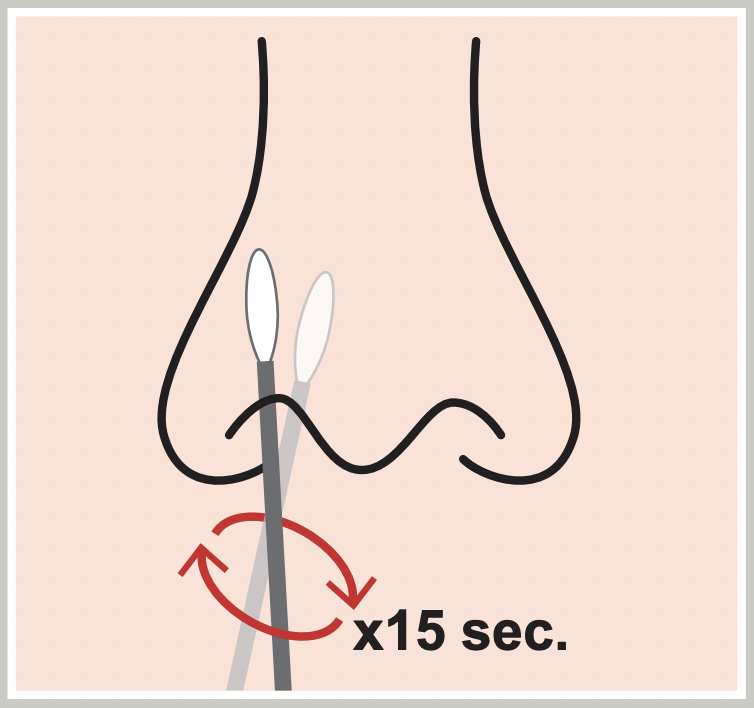 Contrairement au schéma de la notice il ne faut pas mettre deux écouvillons dans la même narine
