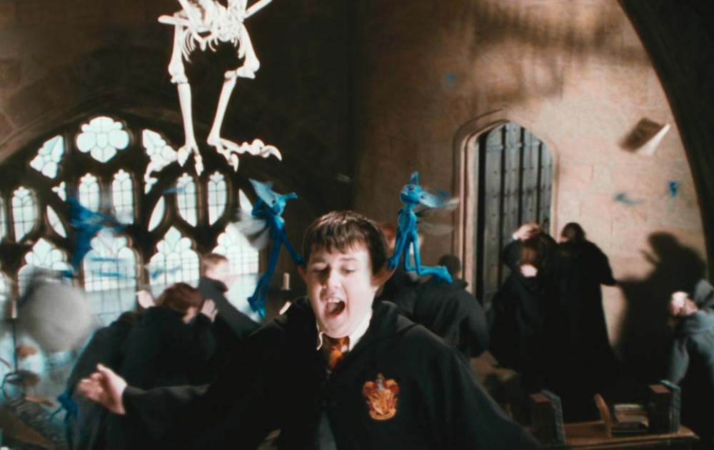 Quand Gilderoy Lockhart libère des lutins de Cornouailles dans sa salle de classe, il perd le contrôle de la situation. Les lutins attrapent Neville par les oreilles et déjà, on remarque un truc bizarre. Les oreilles humaines sont-elles vraiment si extensibles ? Et quand on relâche la pression, vous pensez qu'elles restent agrandies comme ça ? On me dit dans l'oreillette que ce serait des prothèses en caoutchouc mais je refuse d'y croire.