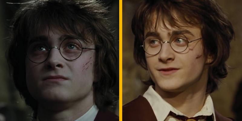 Après un combat acharné contre Voldemort, Harry s'en tire avec une simple égratignure sur la joue (tu m'étonnes que personne ne veuille le croire). Selon les plans, l’égratignure change. C'est d'abord deux traces peu profondes puis une trace plus profonde.