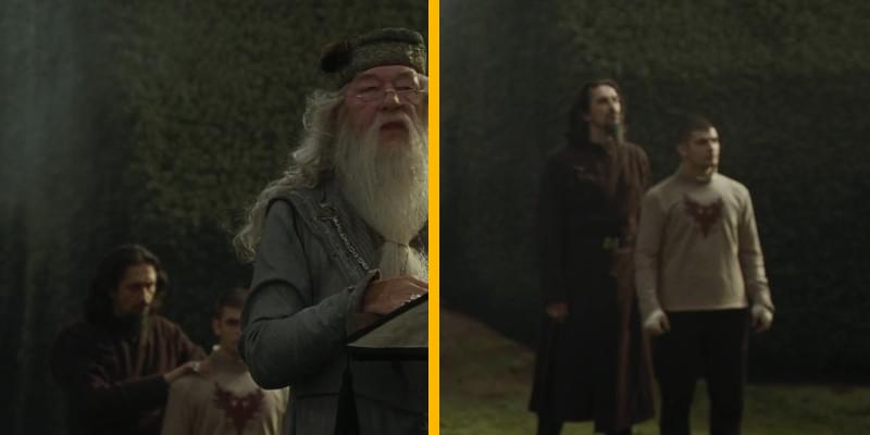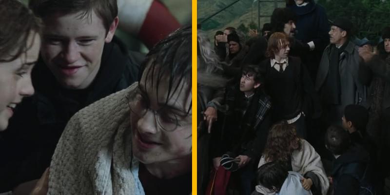 A la fin du film, on voit Harry, Ron et Hermione qui discutent de leur prochaine année à Poudlard. Derrière eux, on peut voir des élèves de l'école qui saluent les élèves de Durmstrang et Beauxbâtons qui s'en vont. Quelques secondes plus tard, les trois amis vont à leur tour sur le balcon et surprise : il n'y a plus personne.