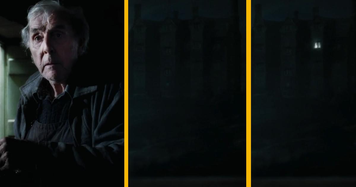 Au tout début du film, le jardinier du manoir des Jedusor prépare du thé dans sa cuisine lorsqu'il est interpellé par quelque chose qu'il voit par la fenêtre. Sur le plan d'après, on voit une lumière s'allumer dans le manoir censé être vide, derrière la fenêtre. On comprend l'idée mais si la lumière s'allume juste sur ce plan, par quoi le jardinier est-il interpellé dans le plan d'avant ? Mystère et boule de gomme.