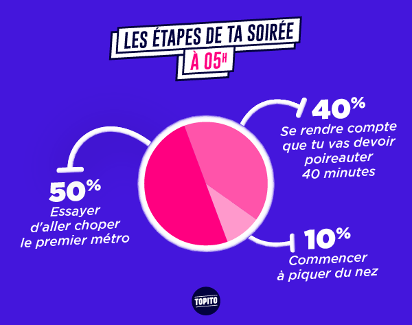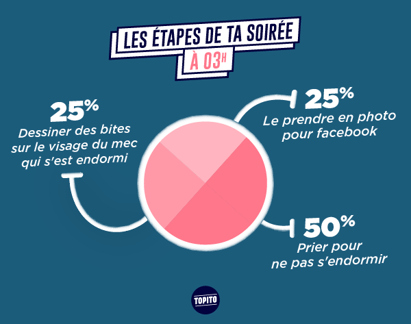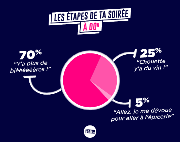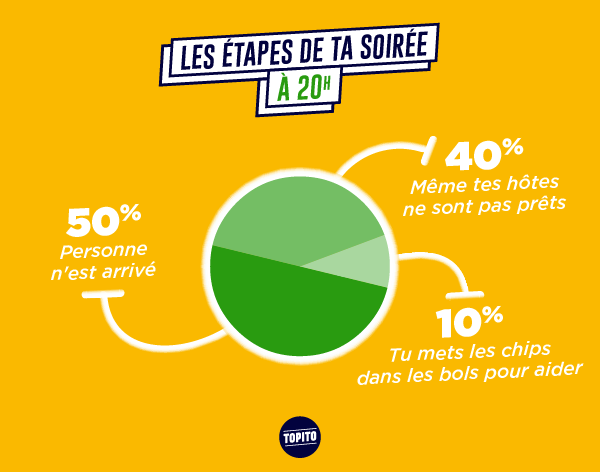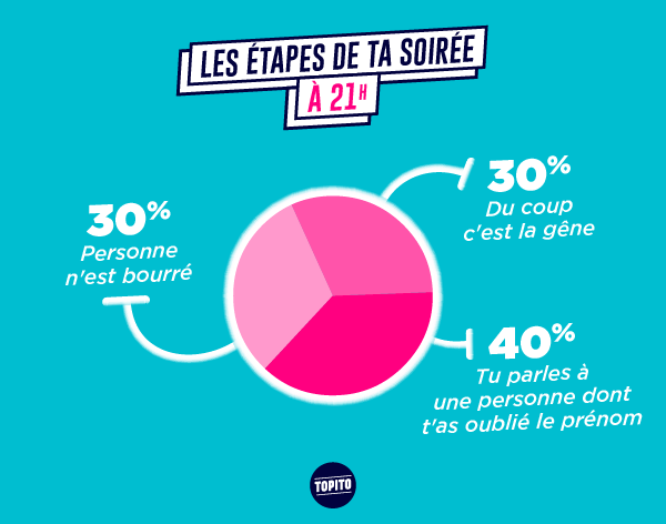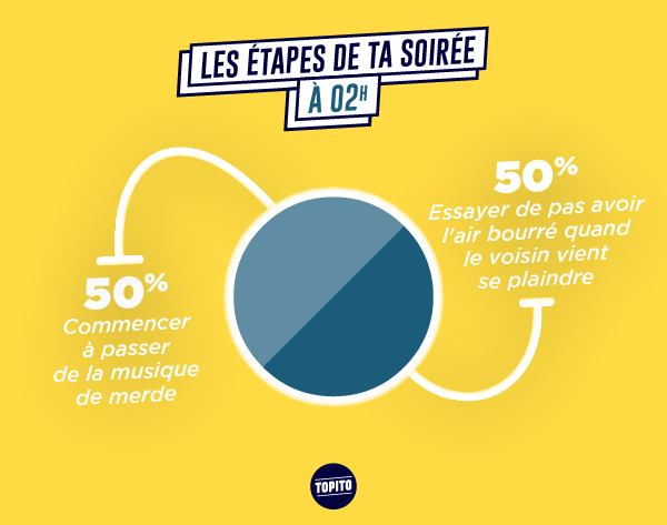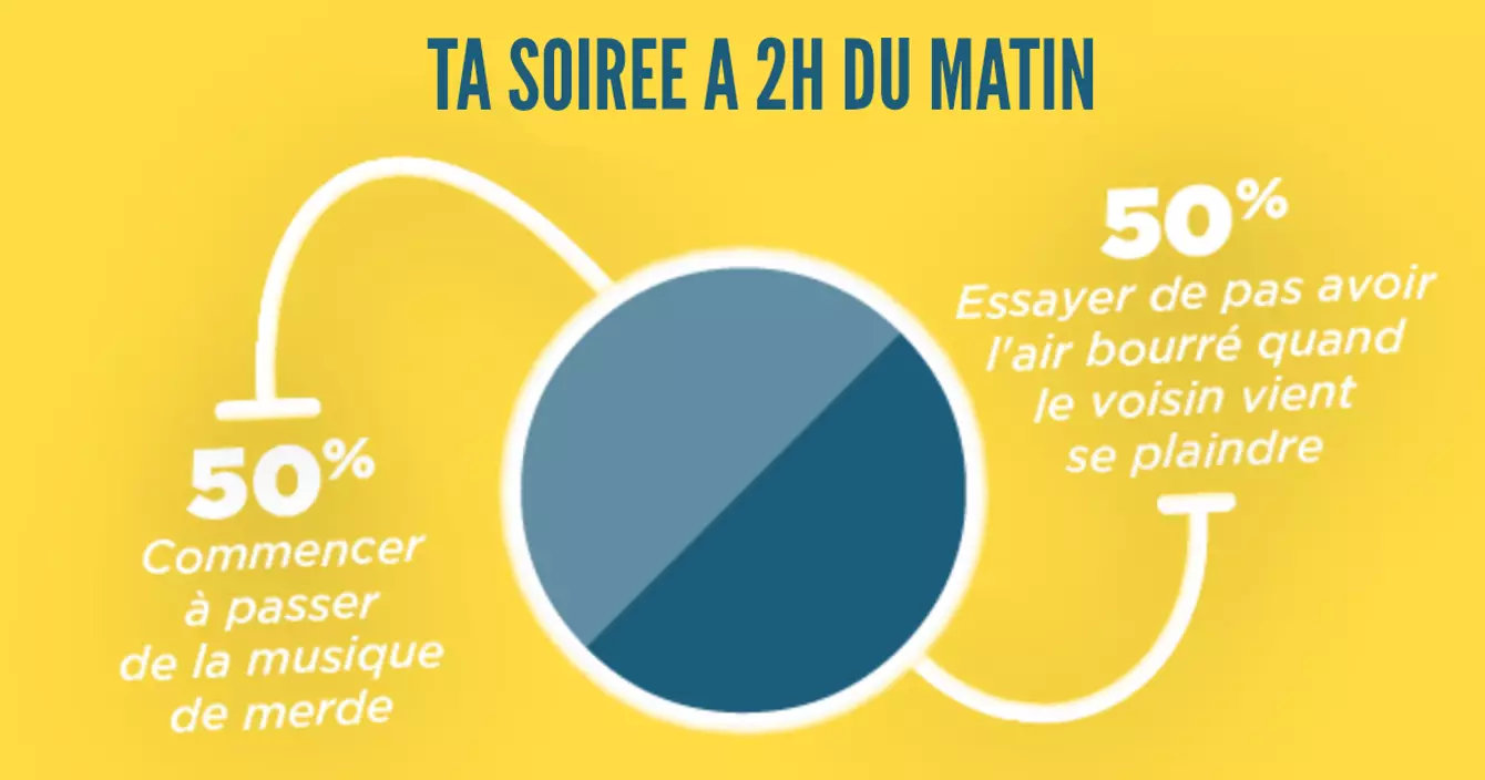 Les soirées t'aimes bien ça, y'a à manger, à boire, des gens à qui parler, ça te change de rester assis dans ton canap' à regarder la téloche. Pourtant t'as dû remarquer que les mêmes schémas se répètent à chaque fois, mais ça t'empêche pas d'y retourner parce que c'est mieux que d'être tout seul chez toi. Et puis parfois tu t'amuses bien quand même.