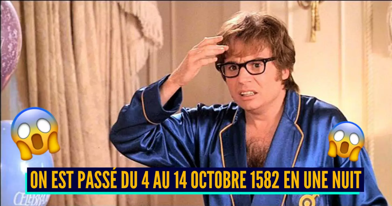 Eh oui, on a sauté en effet dix jours en France, comme ça, tranquillou. Pour vous la faire courte, le calendrier julien a été mis en place par Jules César en -45 (c'est d'ailleurs lui qui a fixé le 1er janvier comme premier jour de l'année puisque ça correspondait à la rentrée administrative des consuls). Le problème c'est qu'une année du calendrier julien ne correspond pas exactement à une année sidérale (en astronomie, c'est l'unité de mesure exacte d'un tour de la Terre autour du Soleil) qui dure 14 secondes de moins. Du coup, chaque année on prend 14 secondes de retard. Le nombre de retards cumulés en 1582 est évalué à 13 jours. Le pape Grégoire XIII décide donc de supprimer 10 jours d'un coup et de changer le système des années bissextiles de façon a rétablir ce décalage (en l’occurrence garder le 29 février sauf pour les années non divisibles par 400, allez comprendre mais mathématiquement ça permet de compenser le retard de 14 secondes). C'est ainsi qu'est né le calendrier grégorien que nous utilisons toujours actuellement.