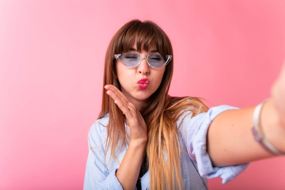 En faisant un duck face