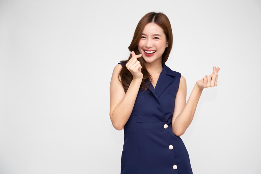 En faisant des cœurs avec tes doigts