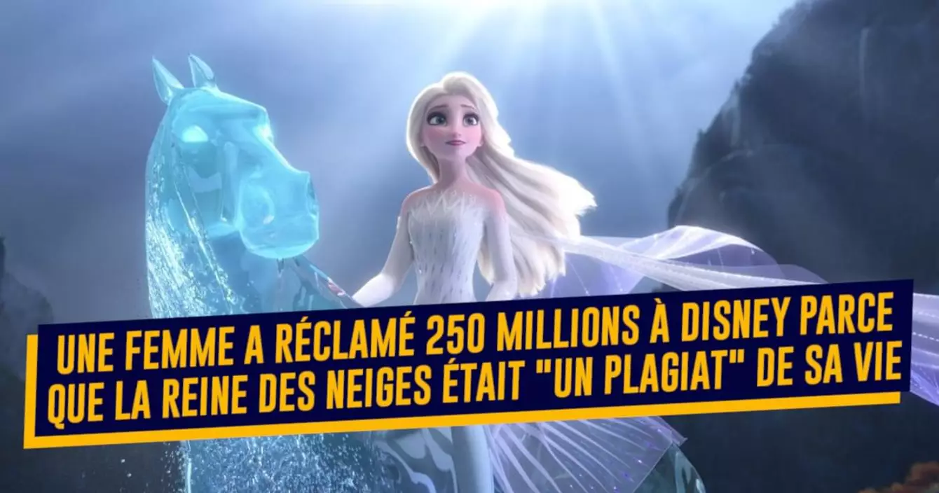 Vous voyez probablement de quoi parle le film La reine des neiges, et si c'est le cas vous serez assez justement tenté de rire si vous appreniez que quelqu'un avait porté plainte en disant que le film était inspiré de sa vie. C'est le cas d'une femme qui a demandé 250 millions de dollars à Disney en disant que le film était un plagiat de son autobiographie parce qu'il parlait de soeurs, de traumatismes et qu'il se passait dans des montagnes enneigées. Voilà voilà.