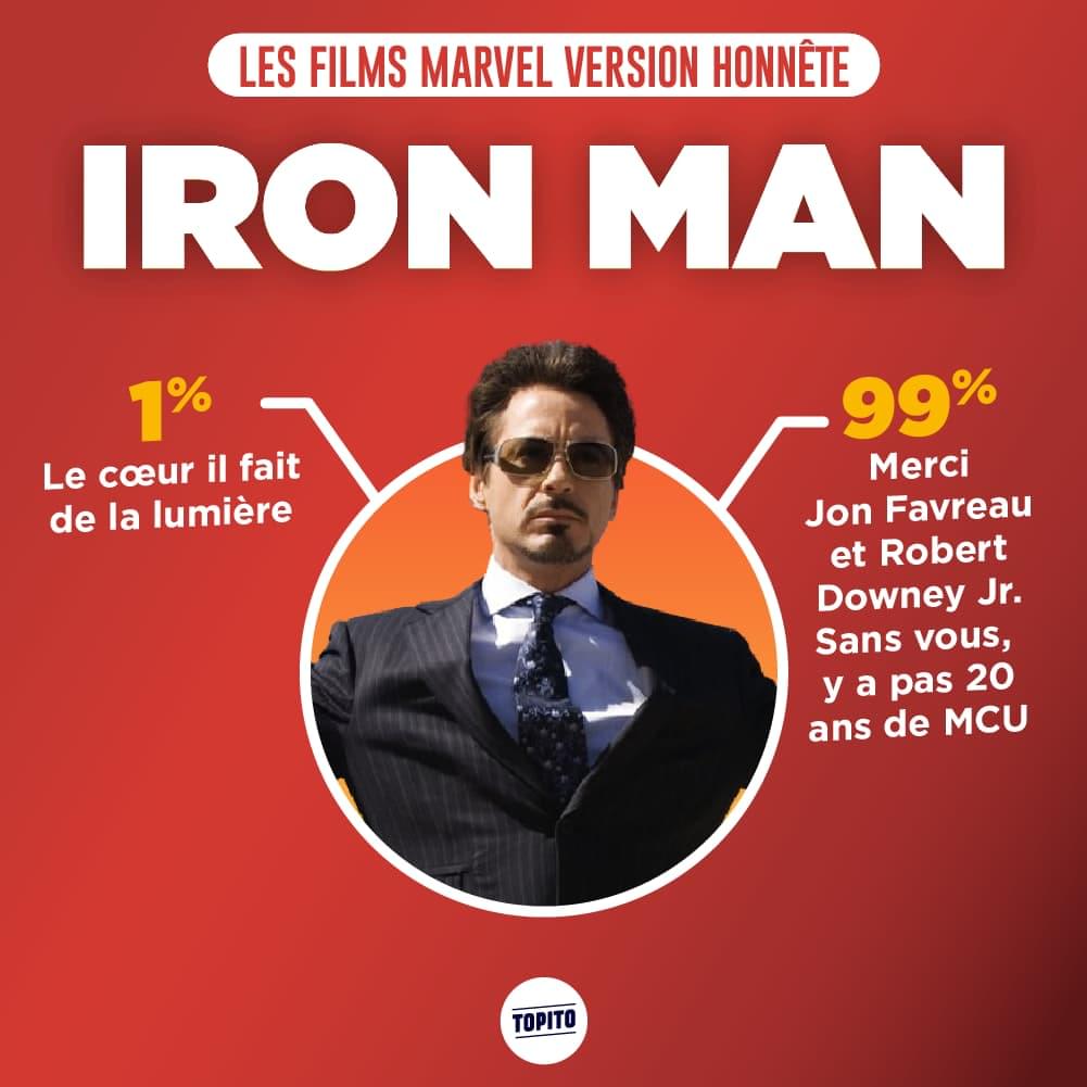Ça va bientôt faire maintenant vingt ans qu'on a des films du fameux Marvel Cinematographic Universe (MCU) et tout ça se compile en 27 films très exactement. Vous l'aurez compris, il était temps de reprendre tout ça depuis le début pour les juger gratuitement un par un en version honnête, parce que nos graphistes sont plutôt doués pour ça. Sans plus attendre on vous propose de se lancer là-dedans parce qu'il y a du taff.