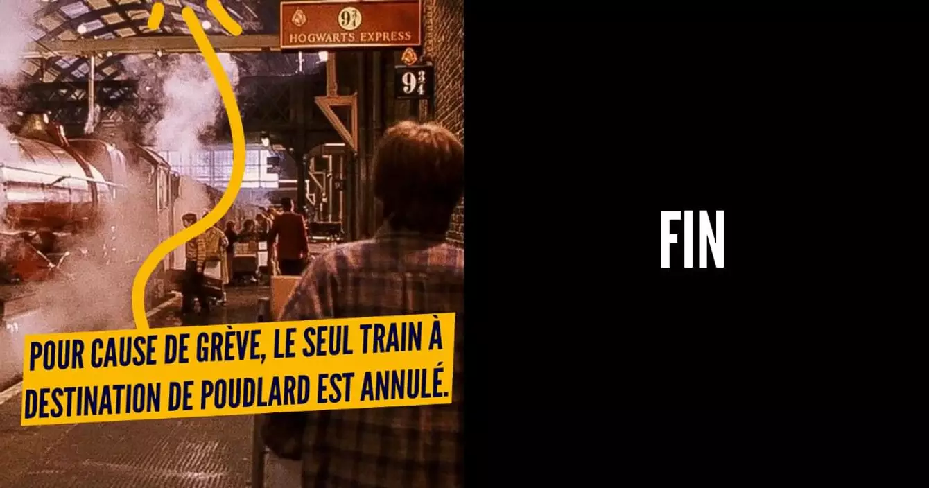 Tous les élèves auraient loupé leur rentrée à cause du Poudlard Express puisqu'il n'y a pas d'autres moyens de locomotion pour se rendre à Poudlard. Super, JK Rowling si elle avait connu la grève, elle aurait écrit que deux chapitres de son livre de merde et je peux vous dire que ça aurait pas marché autant.