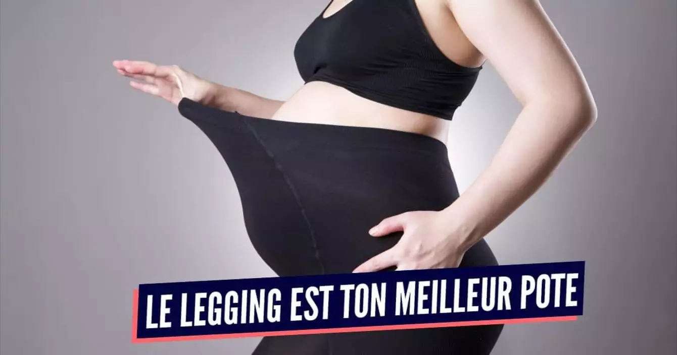 Je ne te parle pas des leggings lambda, mais bien de ceux faits exprès pour la maternité. Ils ont un bandeau qui t'englobe le ventre et ne te serre pas la taille, une vraie révolution j'te jure.