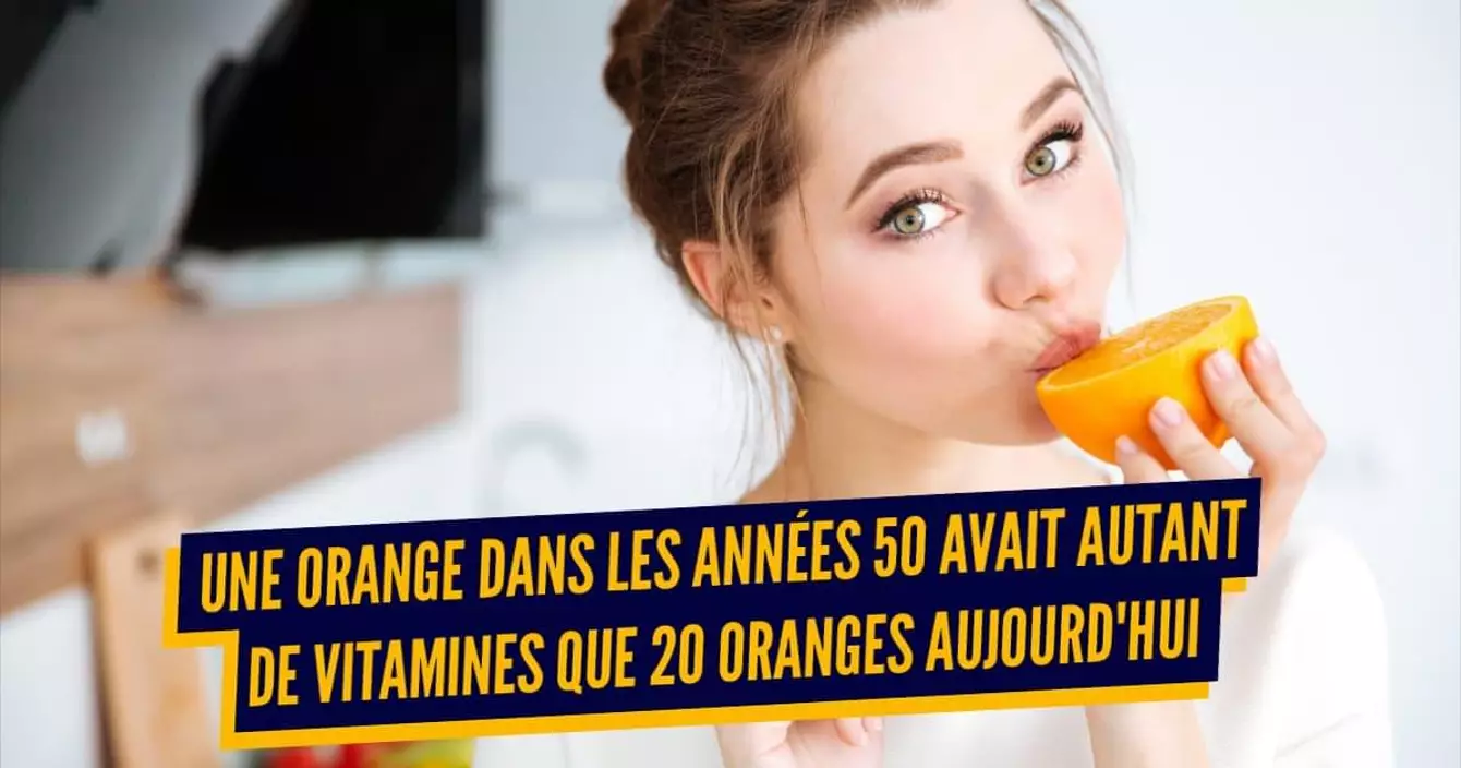 Symbole de vitamine par excellence, les oranges sont en fait une vaste mascarade. Du moins les oranges d'aujourd'hui. Techniquement il en faudrait 21 pour avoir le même apport nutritif que les oranges d'autrefois. Quant aux jus d'orange, je vais pas vous mentir, c'est pas plus nourrissant que de la pisse de chat.