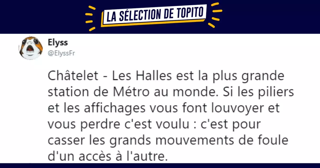Châtelet - Les Halles est la plus grande station de Métro au monde. Si les piliers et les affichages vous font louvoyer et vous perdre c'est voulu : c'est pour casser les grands mouvements de foule d'un accès à l'autre. pic.twitter.com/Qew5sZRrGE