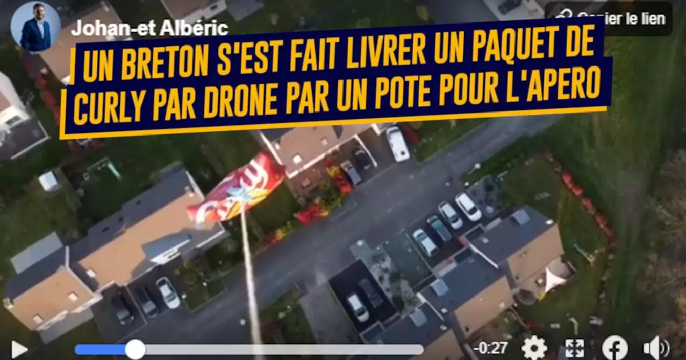 Le mec s'est fait livrer des Curly par un voisin qui possédait un drone parce que, je cite « il n'avait pas de Curly avec son rosé ». Faut reconnaître que c'est relou de pas avoir de Curly avec son rosé. Evidemment, tout cela se passe EN BRETAGNE QU'EST-CE QUE VOUS CROYEZ ?