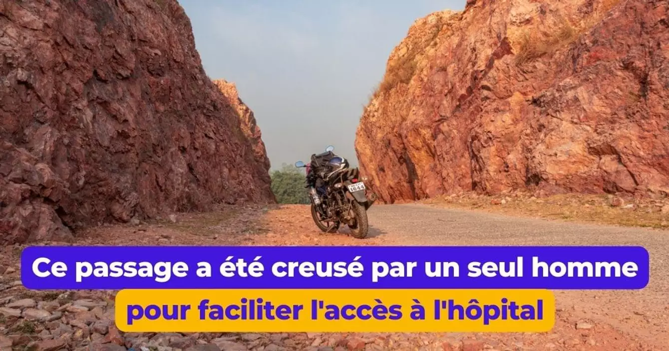 Il lui aura fallu 20 ans pour creuser ce passage de 110 mètres de long et de 10 mètres de large dans une paroi rocheuse, à l'air d'outils rudimentaires et à la sueur de son front. Son objectif était simplement de réduire la distance pour se rendre à l'hôpital. Respect.