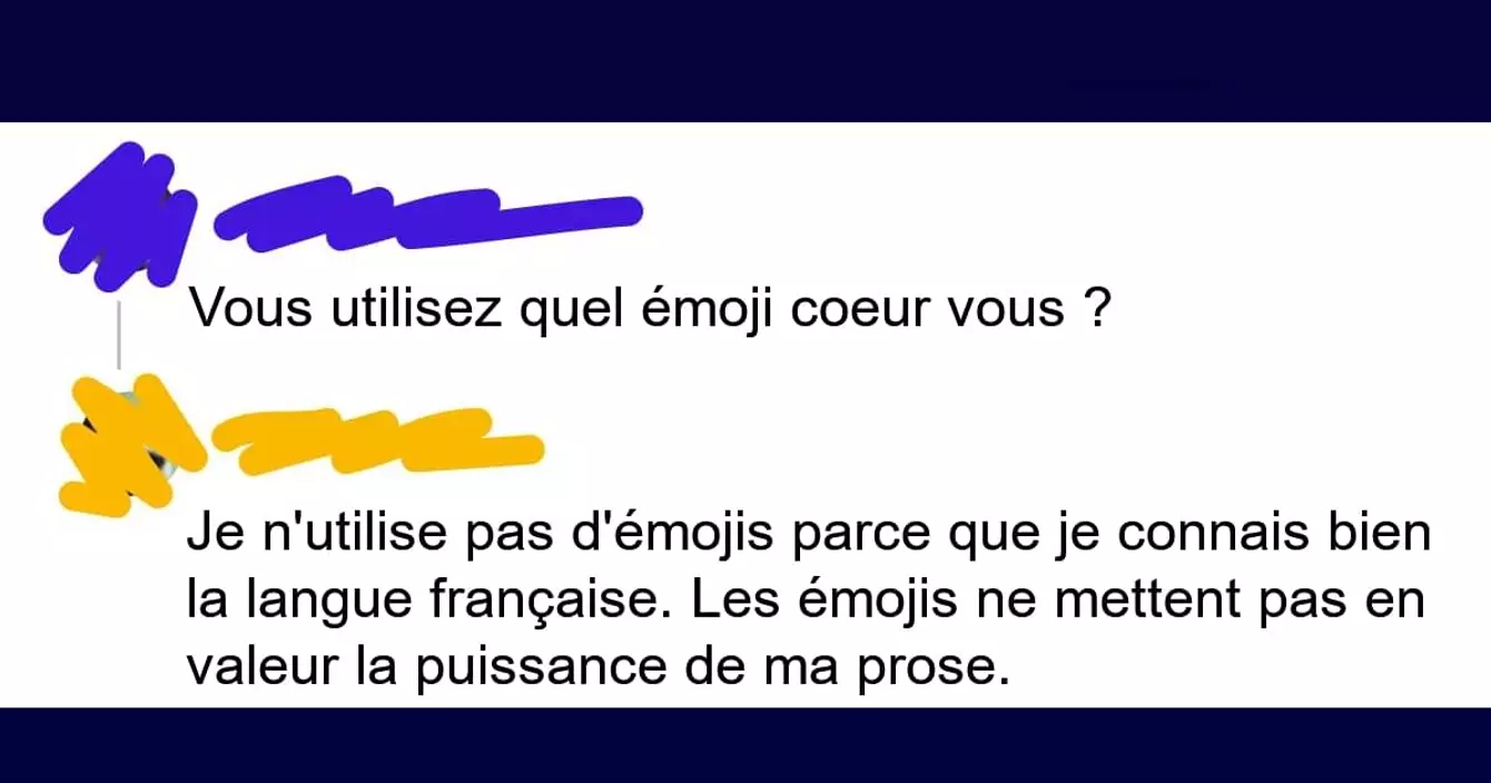 « Je suis un éditeur professionnel. Je n'utilise pas d'émoji parce que je connais la force de la langue anglaise. Des petits blobs colorés ne mettent pas en valeur la puissance de ma prose. »