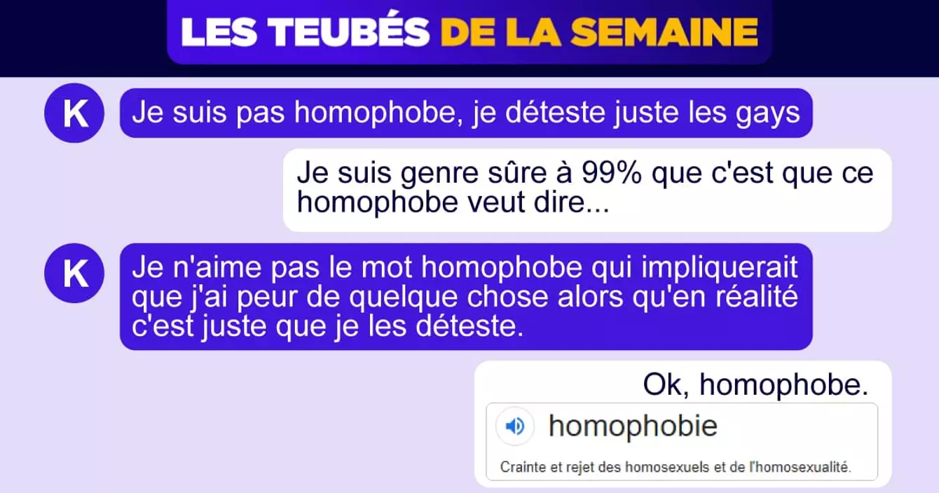 - Je n'aime pas le mot homophobe, ça implique que j'ai peur de quelque chose, alors qu'en vrai c'est juste que j'aime pas les tapettes.