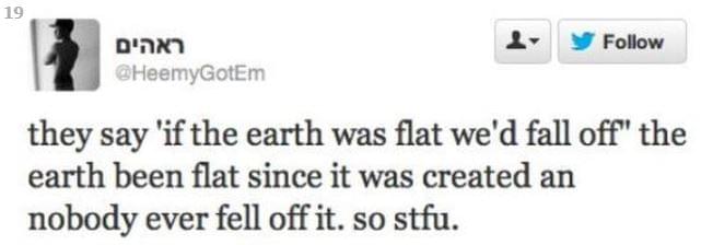 Ils disent "si la Terre était plate on tomberait", la Terre est plate depuis sa création et personne est tombé alors fermez la.