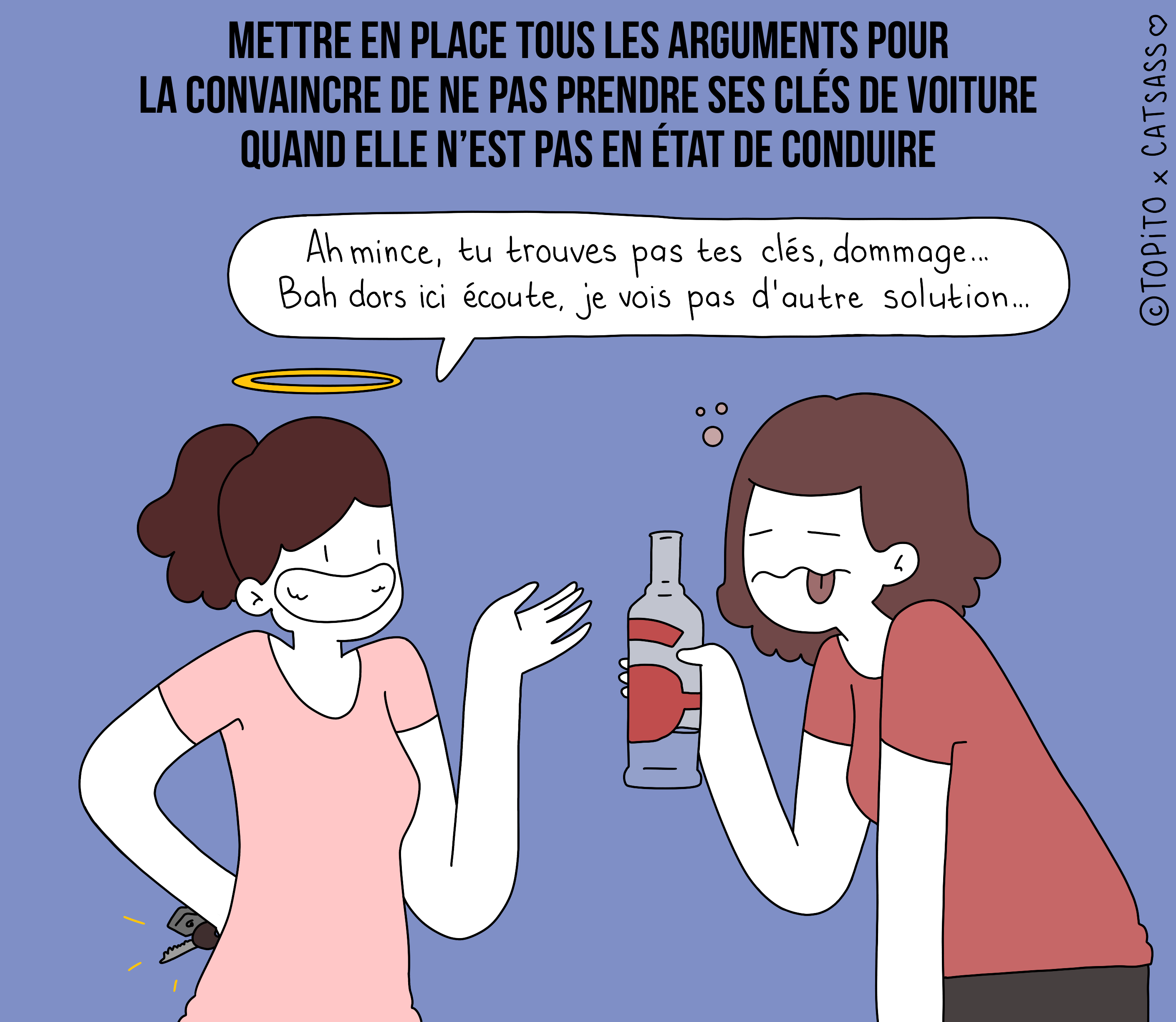 Mettre en place tous les arguments pour la convaincre de ne pas prendre ses clés de voiture quand elle n’est pas en état de conduire
