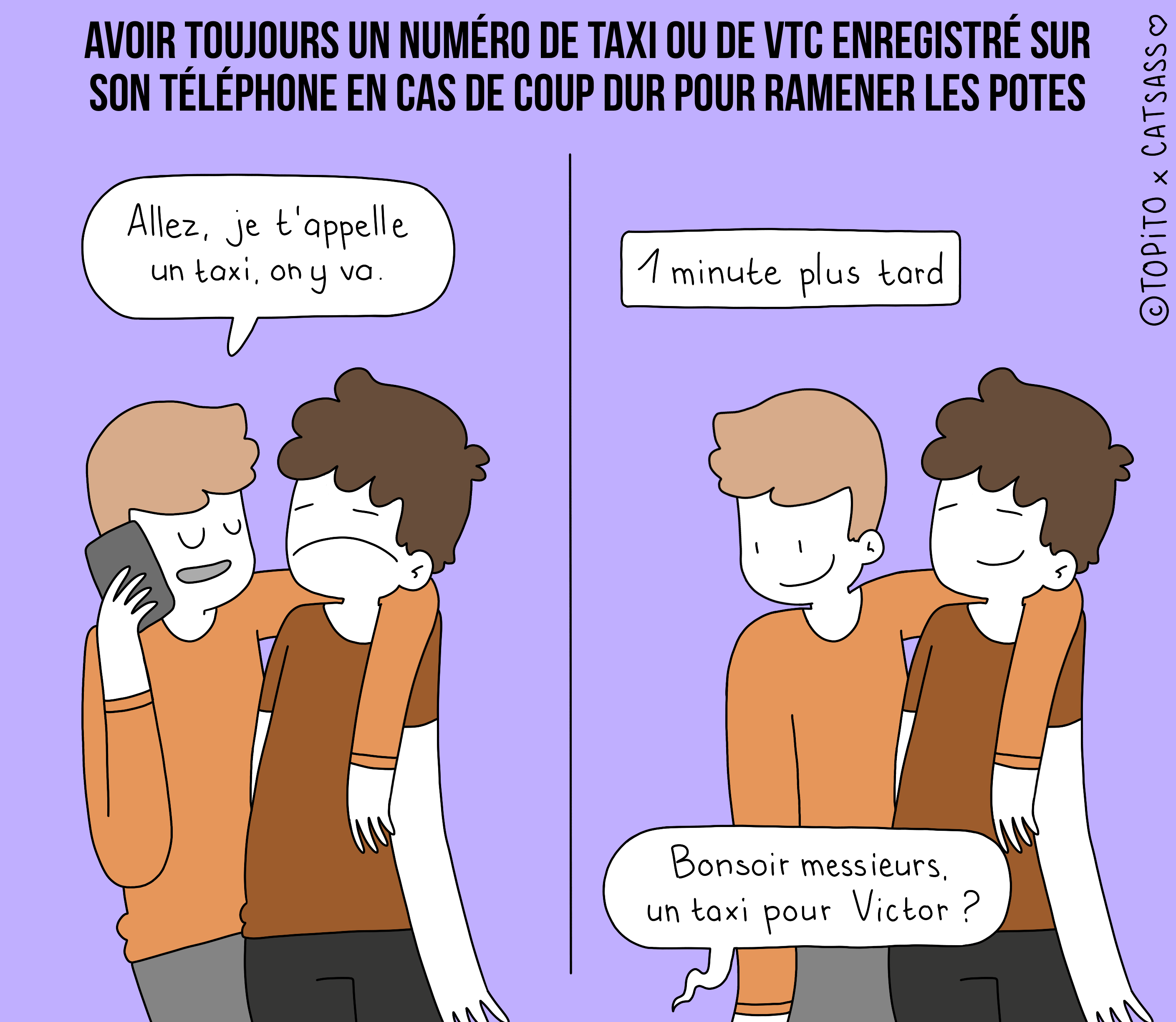 Avoir toujours un numéro de taxi ou de VTC enregistré sur son téléphone en cas de coup dur pour ramener les potes