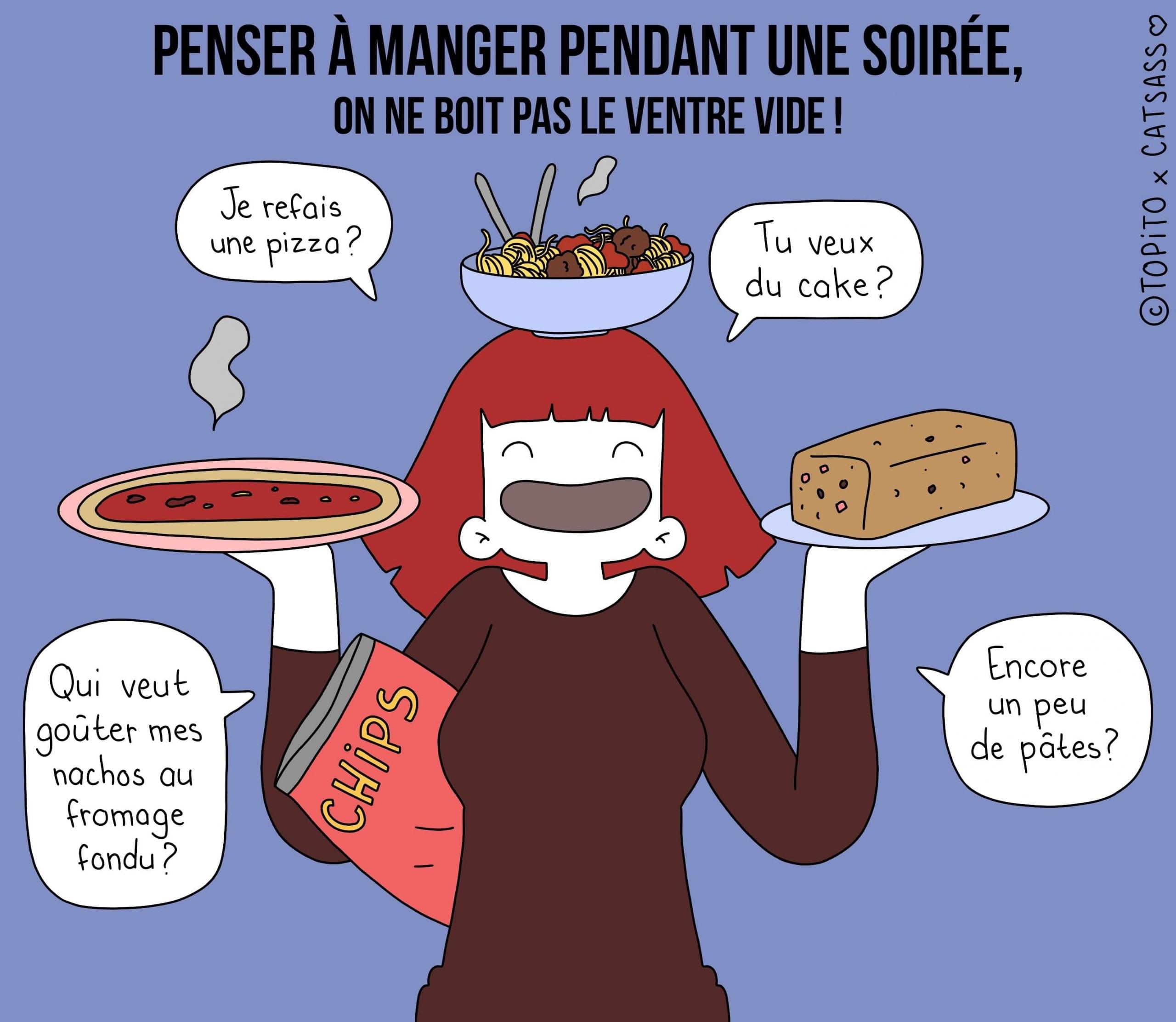Penser à manger pendant une soirée, on ne boit pas le ventre vide !
