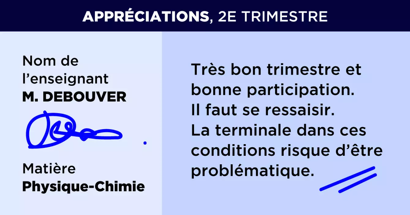 Les profs ça juge, ça note, ça donne des conseils, ça se permet des bons mots sur les carnets de correspondance, ça se la joue « le savoir, c'est moi », « l'autorité, c'est moi », « si vous ne travaillez pas, vous allez mourir sous un pont », mais ça réussit quand même assez régulièrement à faire des fautes monumentales dans des bulletins de fin d'année ou, pire, à y raconte des choses sans queue ni tête.