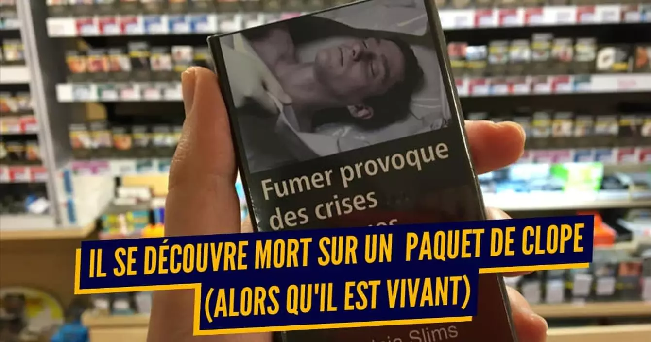 Il se découvre en photo mort sur un paquet de clopes (ALORS KIL É VIVAN)