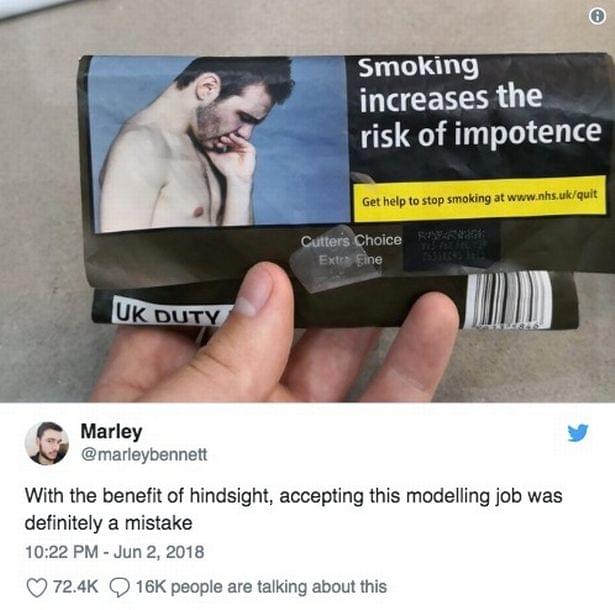 Un Anglais a regretté d'avoir posé pour le paquet de la teu-hon