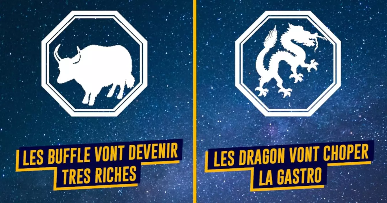 Aujourd'hui c'est le Nouvel An chinois, et cette année sera celle du buffle. Pratiquant moi-même l'astrologie chinoise en amateur depuis l'âge de mes 2 ans, j'ai décidé de te faire ton horoscope de l'année 2021. Est-ce que tu vas devenir riche et acheter une maison à Dunkerque ? Est-ce que tu vas perdre la vie dans un banal accident de monocycle ? Est-ce que tu vas épouser un expert-comptable communiste ? C'est ce que tu vas apprendre dès maintenant.