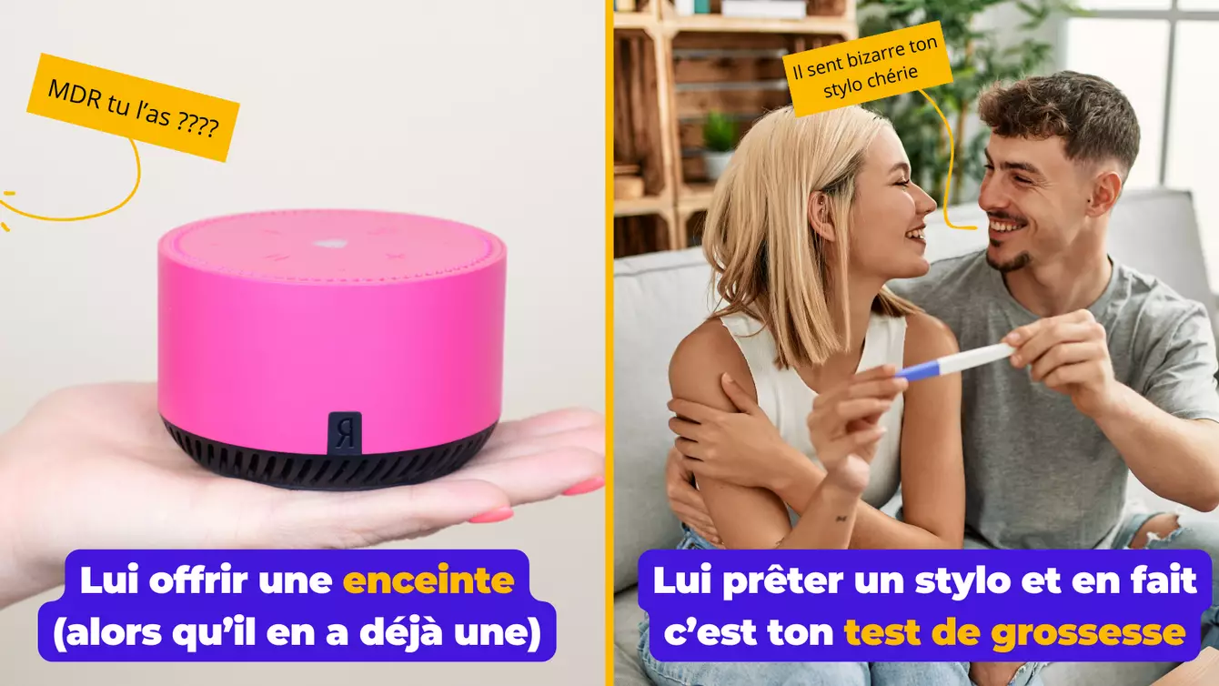 Genre cacher des couches dans les poêles de la cuisine, accrocher des tétines aux clés de voiture ou foutre une poussette sous son oreiller. Subtil et ingénieux.
