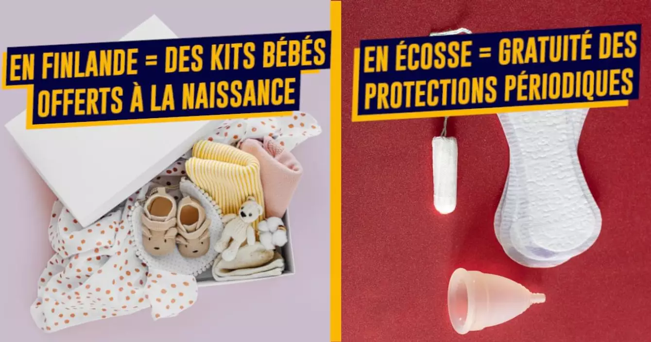 En Finlande, et ce depuis 1938, l'agence de sécurité sociale du pays offre un kit de matériel à chaque naissance d'un enfant. Dans cette boîte, on trouve ce dont l'enfant aura besoin pour la première année de sa vie : des vêtements, des jouets et peluches, des couvertures… mais aussi des produits pour la maman comme des protections hygiéniques, crèmes et brosse à cheveux. Le gouvernement distribue environ 40 000 kits chaque année. En France, il faudrait 750 000 kits annuels pour couvrir toutes les naissances.