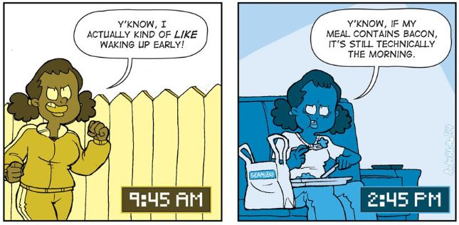 Réalité : 14h45 « Techniquement si mon repas contient du bacon c'est qu'on est encore au p'tit dej »