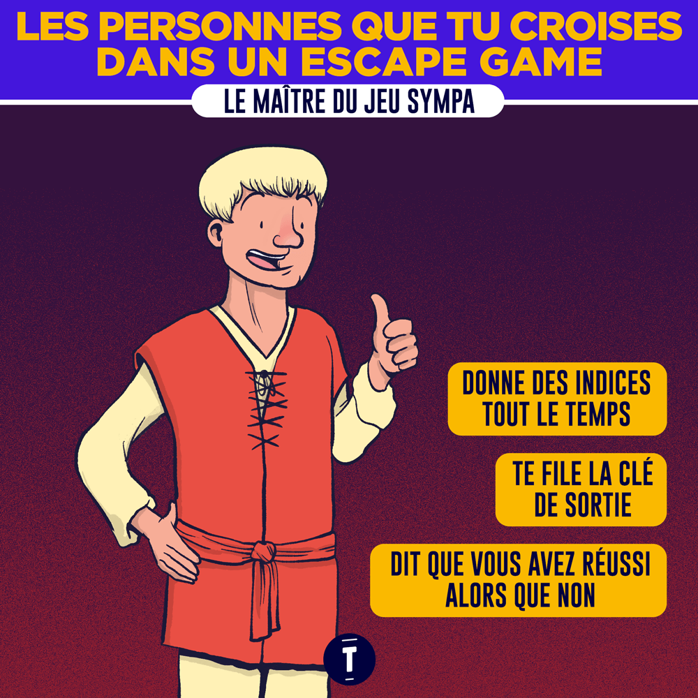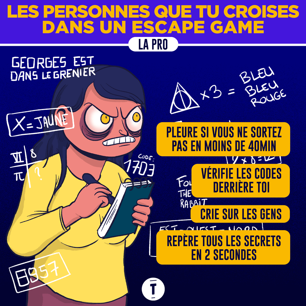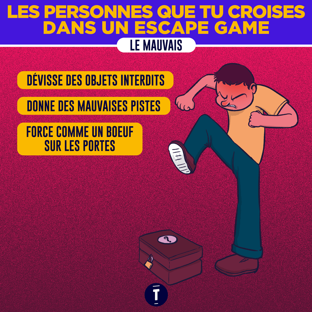 Des Escape Game tu en as fait et refait. Tu connais bien, même si tu ne réussis que 30% des salles. Mais que tu sois plutôt du genre 100% à fond ou du genre à tout casser car tu n'arrives à rien, tu vas forcément te retrouver dans les illustrations ci-dessous.