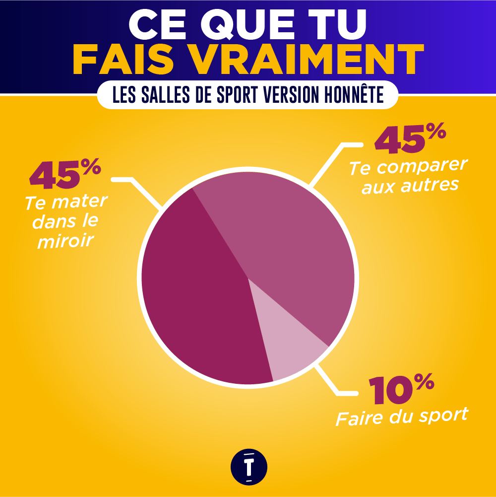 Rien de mieux que la rentrée pour prendre de bonnes résolutions, arrêter l'alcool dont on a clairement abusé pendant l'été, réduire notre consommation de viande puisque la saison des barbeuq est derrière nous et s'inscrire à la salle car les vacances ont mises en lumière notre condition physique déplorable. Parce que pas la peine de se mentir, vous avez bien galéré à nager jusqu'à la bouée ou à aller jusqu'au bout de cette randonnée, pourtant classée « facile et idéale pour les familles ». Donc allez, pour ceux qui n'ont pas la chance de pouvoir pratiquer un sport en plein air, on file à la salle suer un bon coup.
