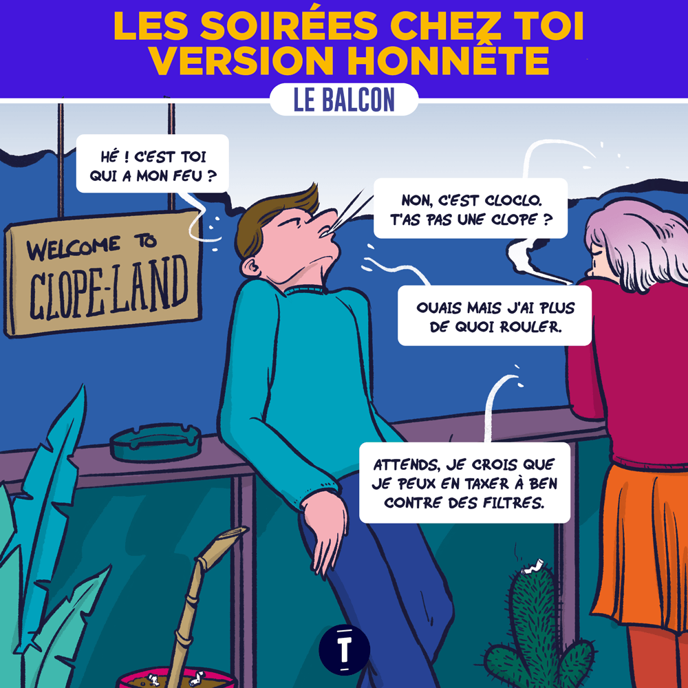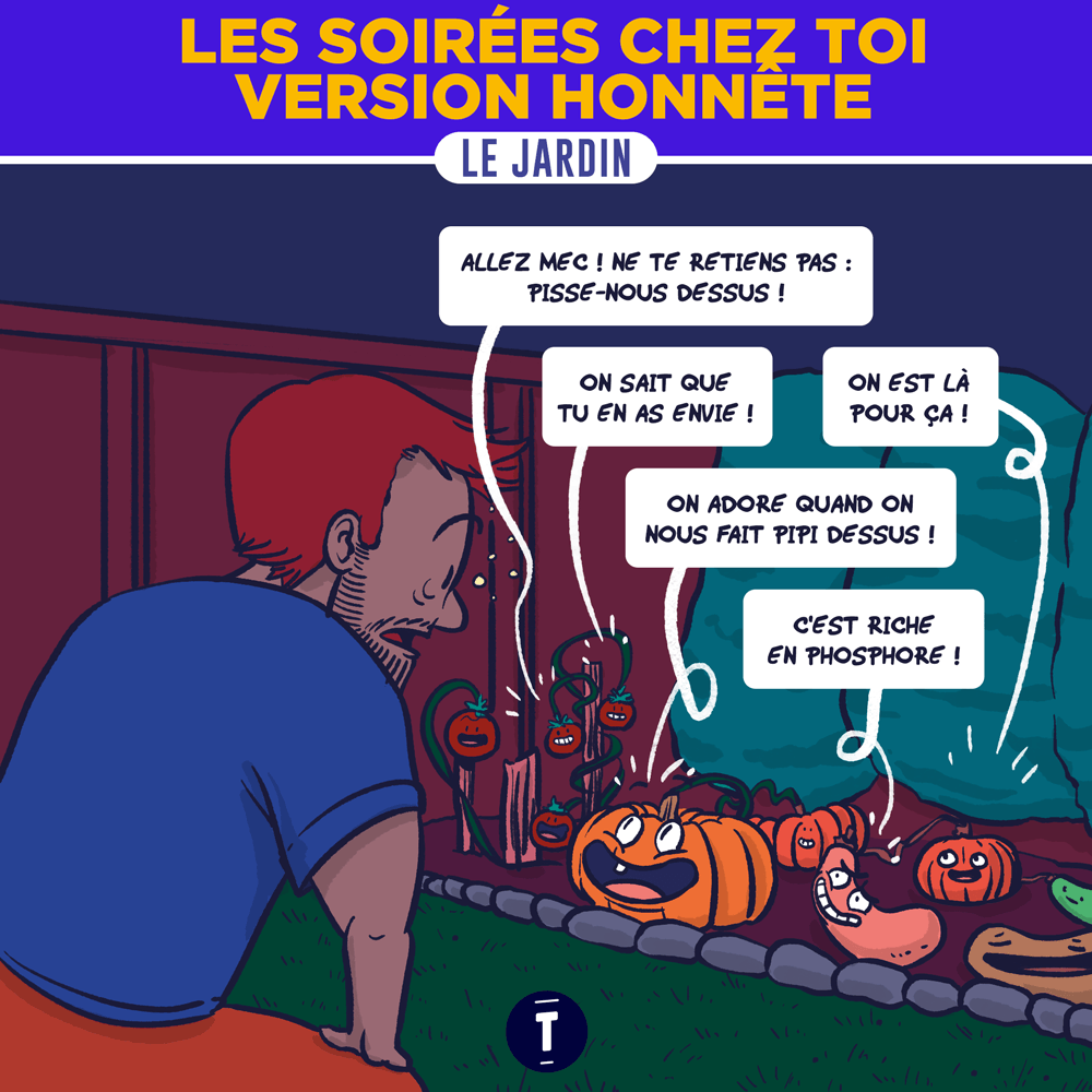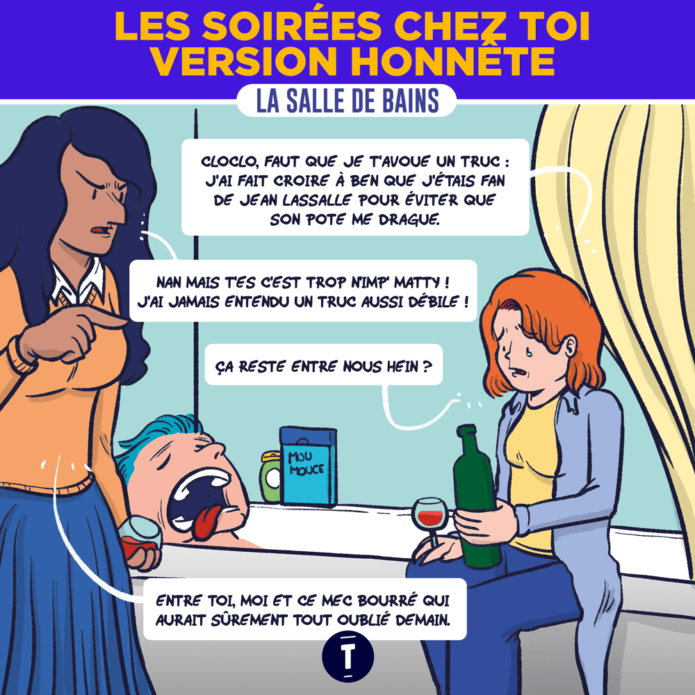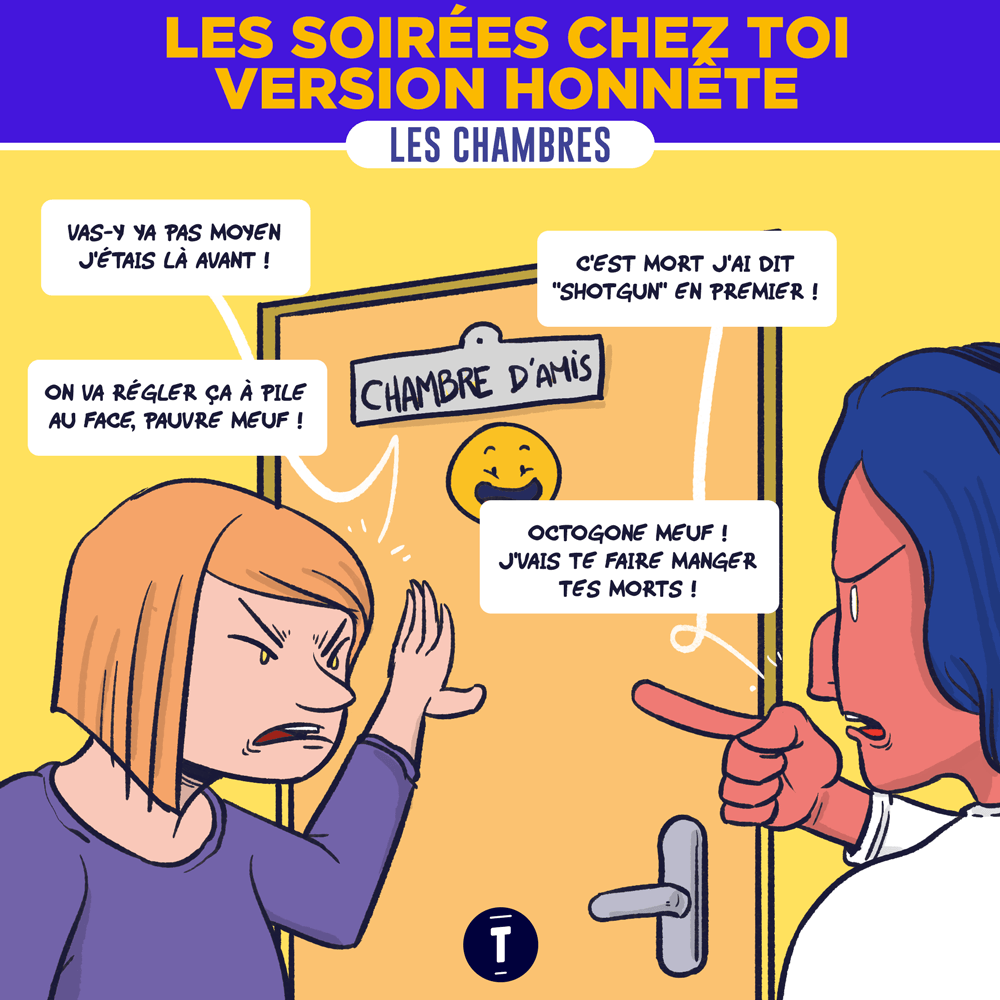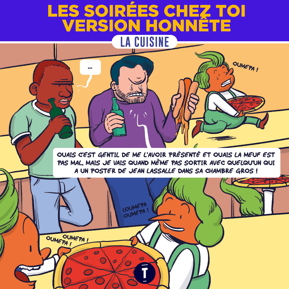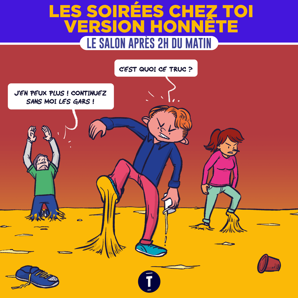 Quand tu fais une soirée chez toi, c'est toujours le chaos. Au début c'est la Comté, et ça termine en Mordor. Du coup on s'est dit que ça pouvait être drôle d'illustrer tout ça, histoire qu'on soit enfin tous d'accord sur le déroulé d'une soirée chez toi.