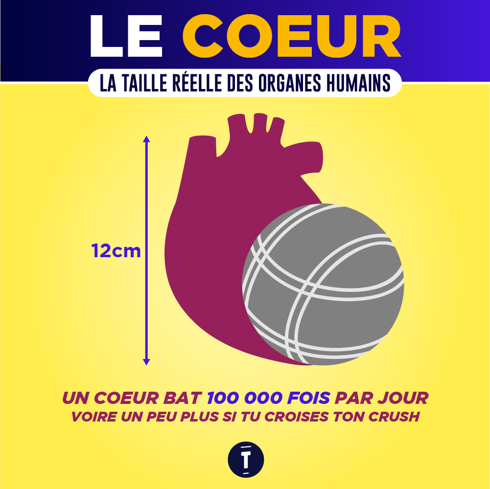 Les cours de SVT étant lointains (je ne me souviens pas plus des schémas de la méiose et de la mitose que des cours d'anatomie), on a voulu comparer nos petits organes avec des objets connus pour tout le monde histoire de se rendre compte de ce qu'on a dans le bidon. Alors attention ici on parle de la taille moyenne des organes sachant que cela varie de quelques centimètres selon les sources donc ne vous insurgez pas dans les commentaires si la taille de votre langue est supérieure à la moyenne. C'est pas de notre faute si vous avez la langue bien pendue.
