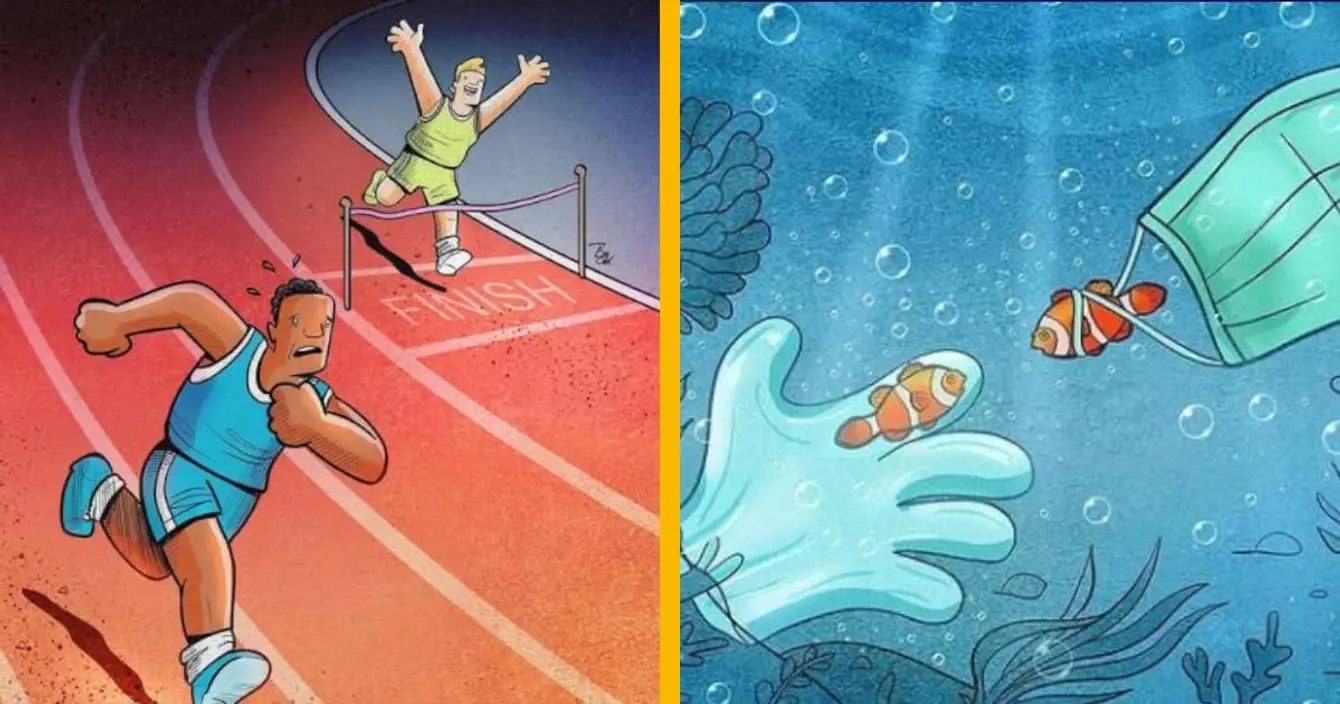 Si comme tout le monde vous avez été sur terre en 2020, il y a de fortes chances pour que vous soyez un peu déprimés. Dans ce cas je vous conseille des illustrations de Alireza Pakdel, qui sont bien dans la tonalité de l'époque. Elles racontent notre société (et ses défauts) et on apprécie fortement son travail. Vous pouvez le suivre sur son compte Instagram @alirezapakdel_artist.