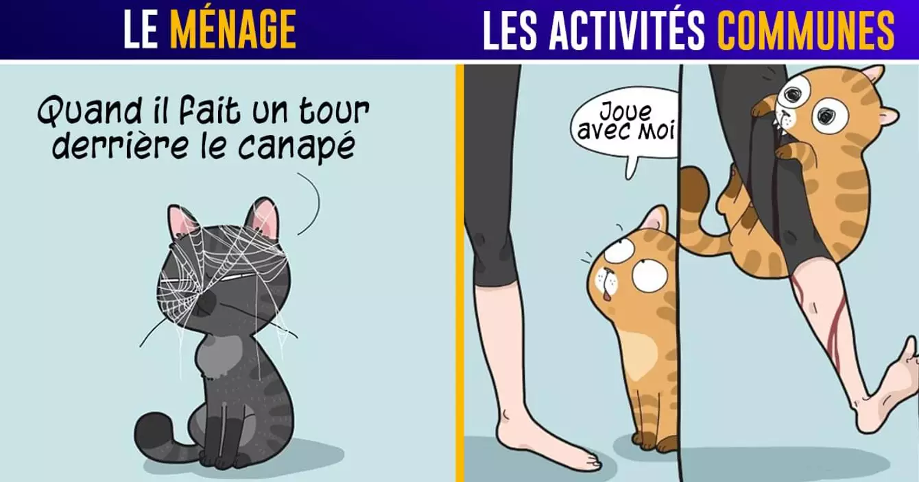 Vivre avec un chat ça demande pas mal de concessions. Pire qu'un coloc. Déjà parce que le gars paye pas de loyer, et en plus parce qu'il faut le nourrir et nettoyer ses déjections. Vraiment naze. On vous avait déjà partagé des illustrations de Lingvistov mais cette fois-ci on a centré la thématique sur ce sujet bien plus politique. Un compte à suivre ici.
