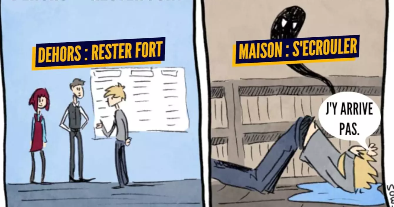 Dehors : Rester fort / À la maison : S'écrouler