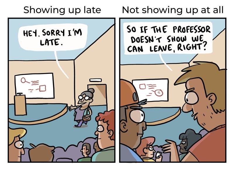 « Donc si le professeur ne se montre pas, on peut s'en aller, c'est ça ? »