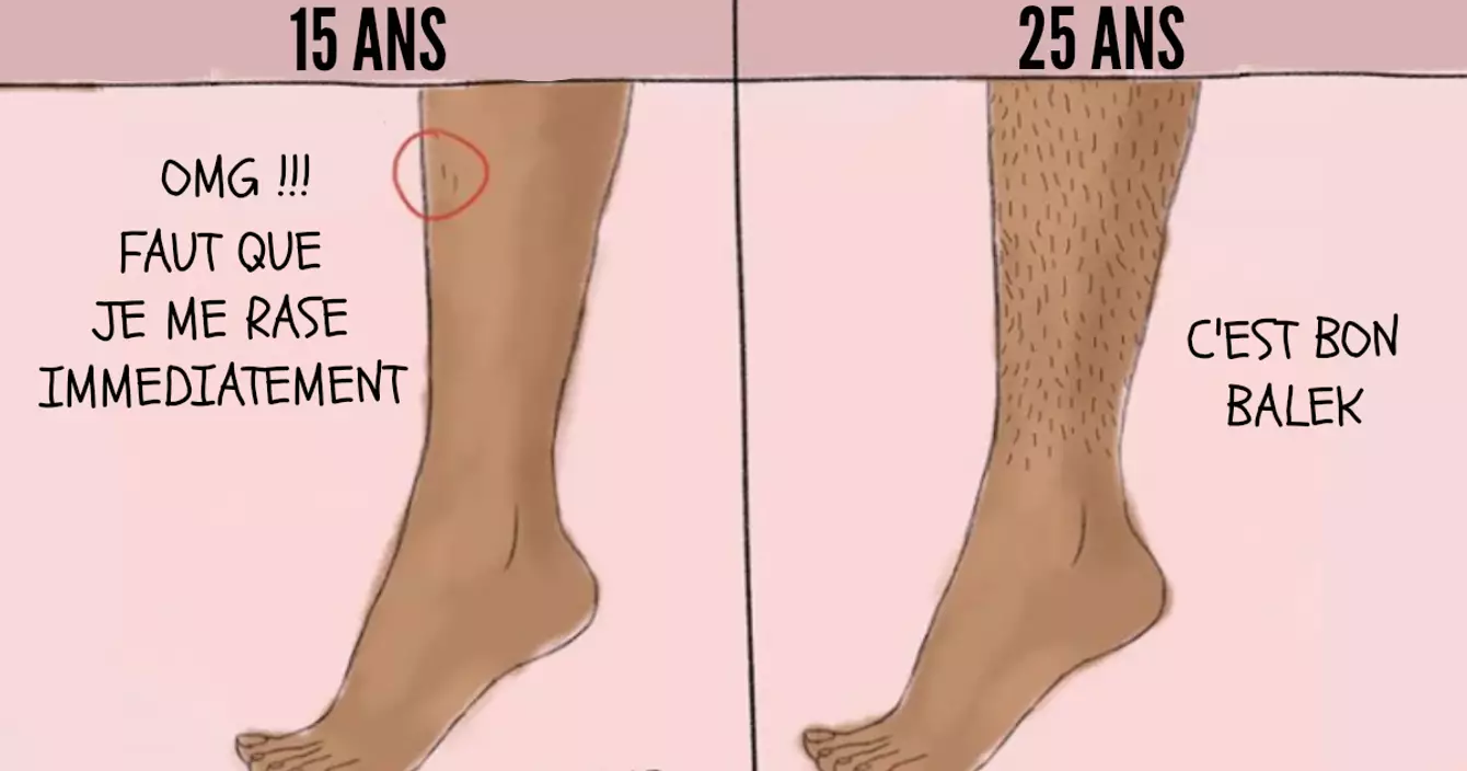 A 15 ans : Oh mon dieu, faut que je me rase !! A 25 ans : balek, de toute façon tout le monde s'en cogne