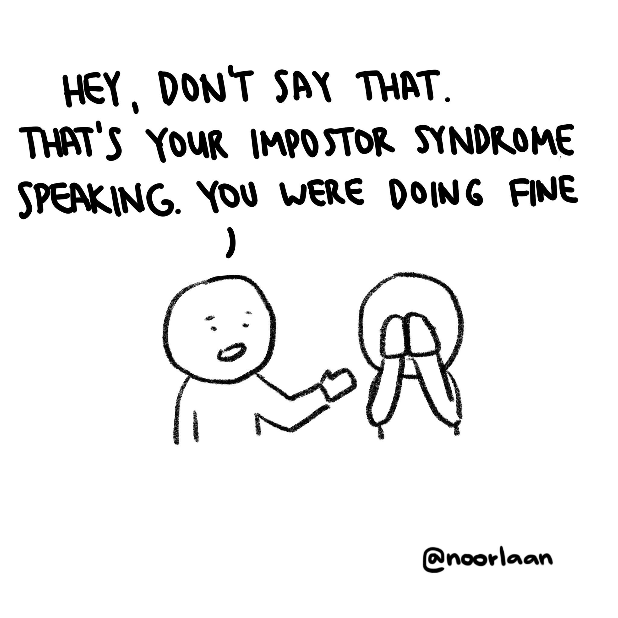- Hey mais dis pas ça, c'est le syndrome de l'imposteur qui te fait penser ça, tu t'en sortais très bien !