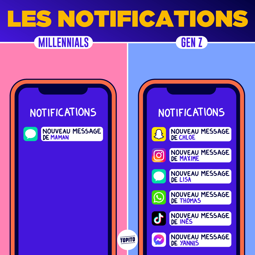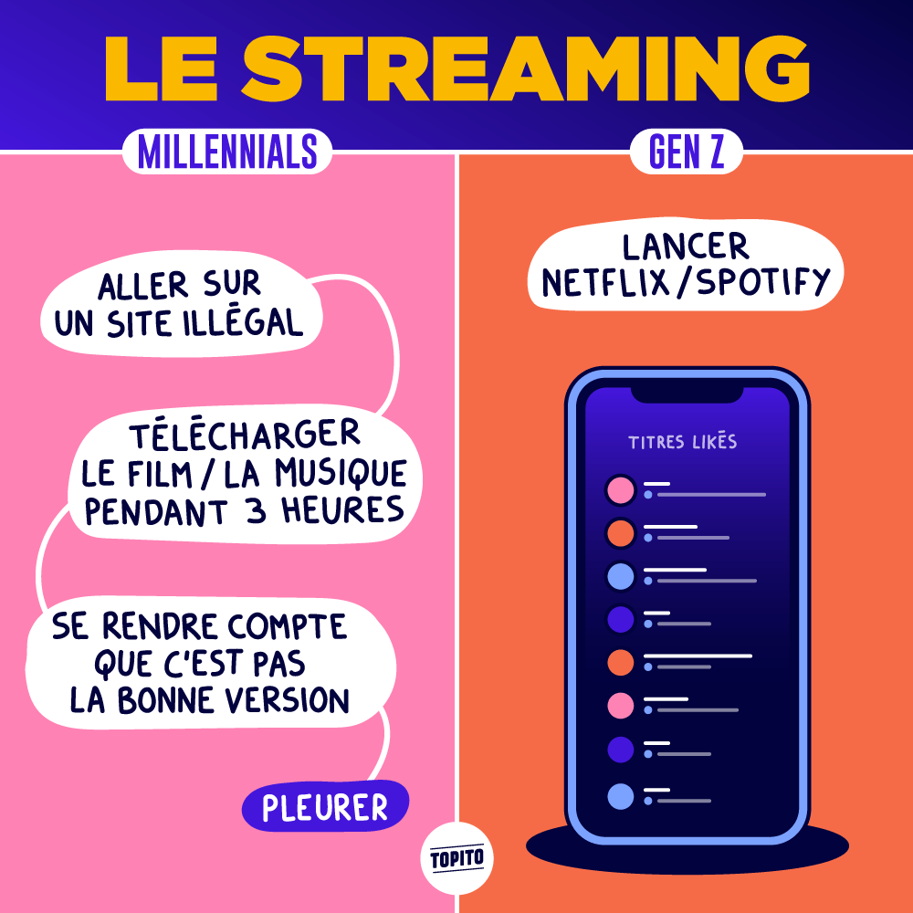 Il y a des tas de différences entre les Millennials et la Generation Z, et il paraît même que la Génération Z trouve les Millennials ringards (ils ont osé…) Mais pour mieux se rendre compte de ce fossé intergénérationnel, rien ne vaut des petites illustrations. Avec des dessins, on comprend tout de suite mieux que les temps ont changé. En mal ou en bien ? Ça on vous laisse décider.